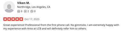 Great experience! Professional from the first phone call. No gimmicks. I am extremely happy with my experience with Anto at LCB and will definitely refer him to others.