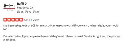 I've been using Andy at LCB for my last 4 car leases now and if you want the best deals, you should too. I've referred multiple people to them and they've all referred as well. Service is right and the process is smooth.