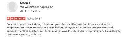 Anto is the best in the industry! He always goes above and beyond for his clients and never disappoints. He under promises and over delivers. Always there to answer any questions and genuinely wants to best for you. He has always found the best deals for my family and I, and I highly recommend working with him.